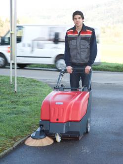 KS 650 IBC Bardzo zwrotna i lekka w obsłudze zamiatarka z napędem akumulatorowym do szybkiego czyszczenia powierzchni bez emisji kurzu. Zbiera wszystkie zabrudzenia z każdego rodzaju podłoża (zasada zagarniania śmieci ponad szczotką).